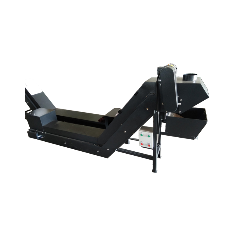 此输送机采用齿轮减速机带动金属链板传动,将冷镦机、搓丝机、冲床等产品传送至料桶、振动盘或下一到工序中。因机身采用异形结构,可伸入机器内部或底部的狭小空间,链板为带大滚子裙边链板,在机身侧板轨道中运行,不但完美适配异形构,而且使间隙更加紧密,机身更加美观,可根据需要配置油盘和油泵也可配置中检料斗。